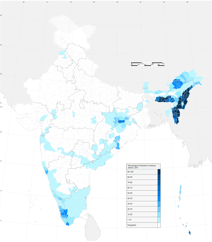 - Partition in the West v/s the East: The states of former Greater Punjab in the Northwest have a very low proportion of Muslims as cross-migration along the border of the newly formed West Pakistan and India was very effective(and violent). On the East, around Bangladesh(then East Pakistan), farmers were more reluctant to leave their lands and violence was mostly concentrated in bigger cities.