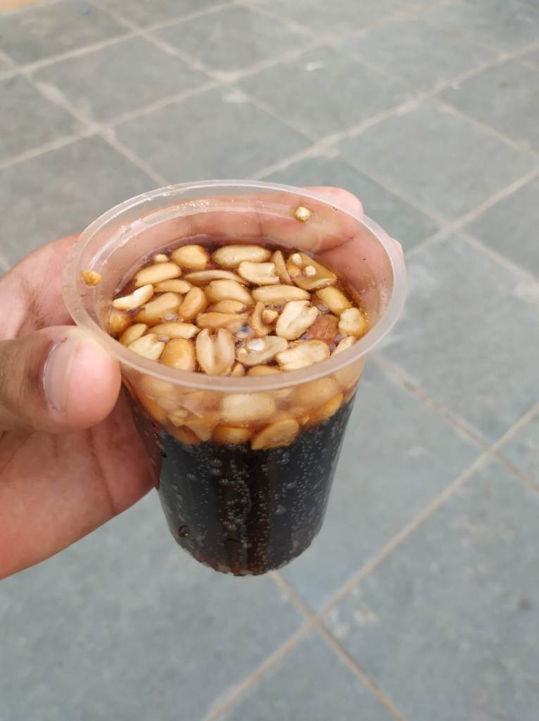 The same Kālā Khattā soda from above but with peanuts. I trashed this one shortly after taking the photo and asked for a refund. The shop owner was not amused. 2/10