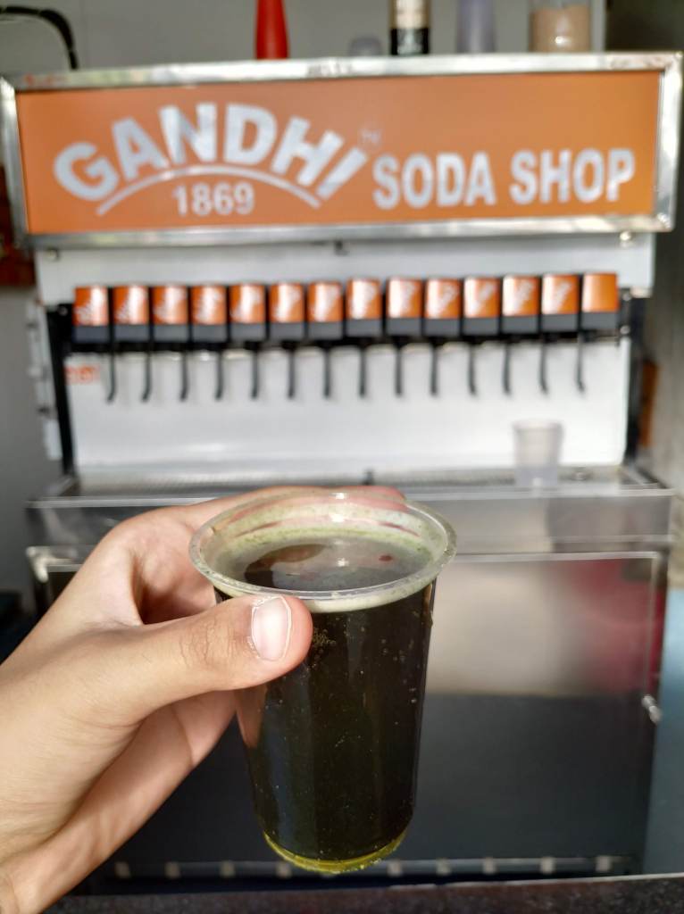 Pudina(Mint) Soda. Kinda tastes like carbonated Panī Pūrī water. They also have masalas and syrups above the soda machine. I regret not asking for those. 5/10