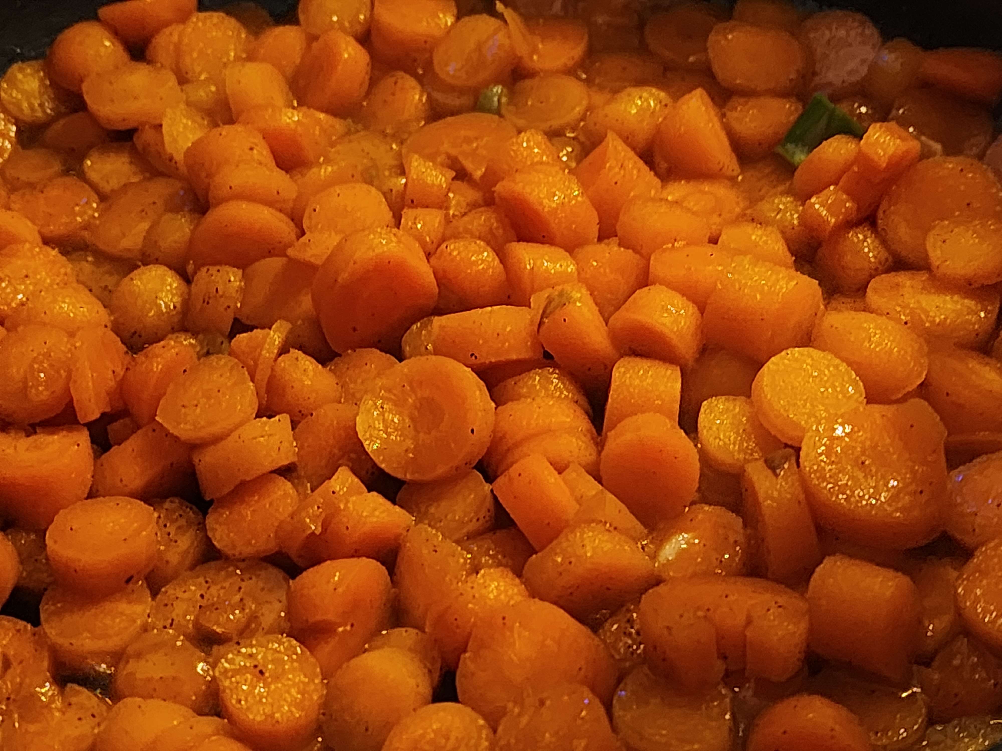 11. In a separate pan, add 2 tbsp of brown sugar, 2 tbsp of butter, and 4 tbsp of water. Once this boils, add the carrot slices.