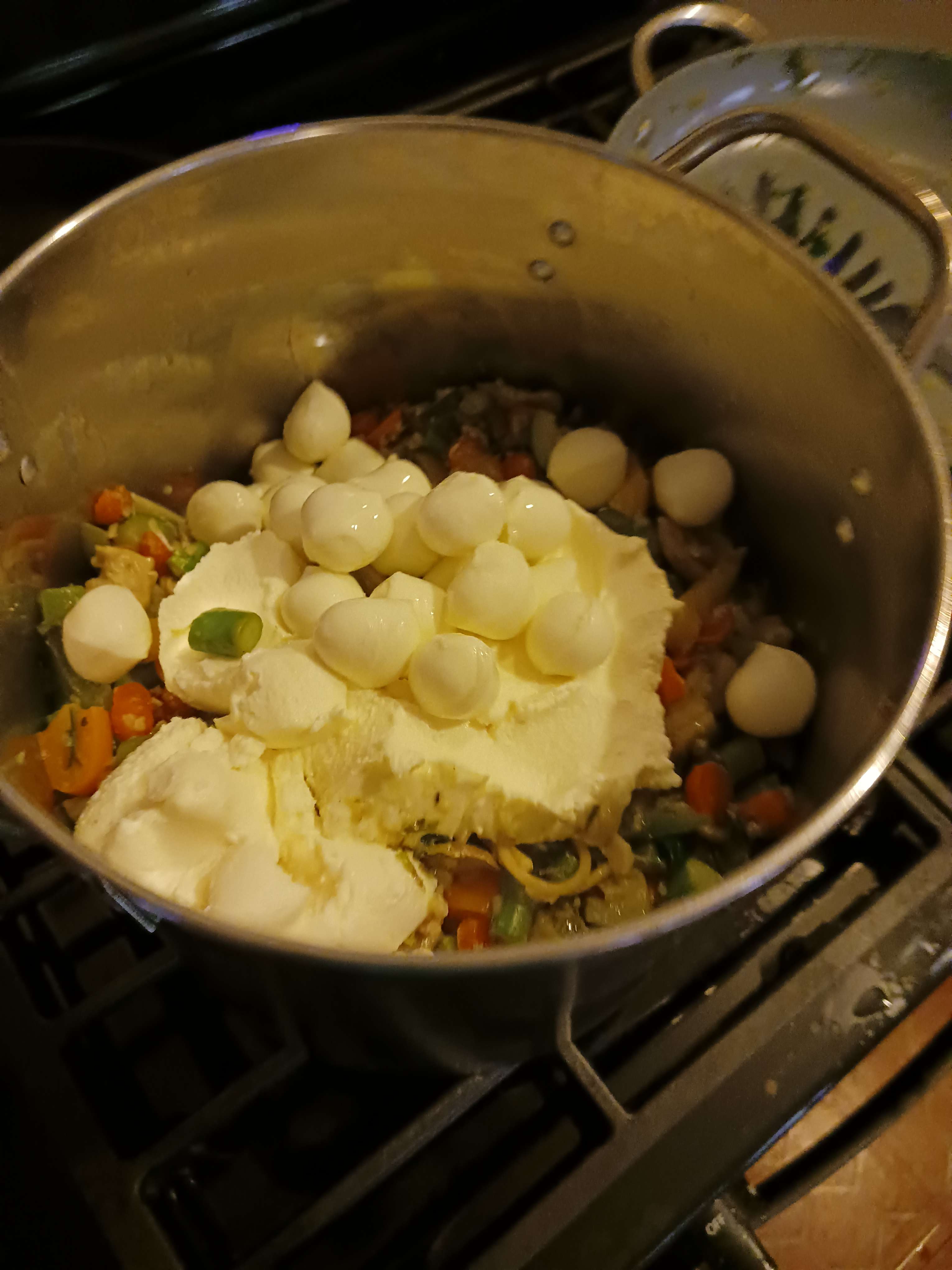 1. Add 1 box of Mozzarella balls. Add 1 box of Ricotta cheese.