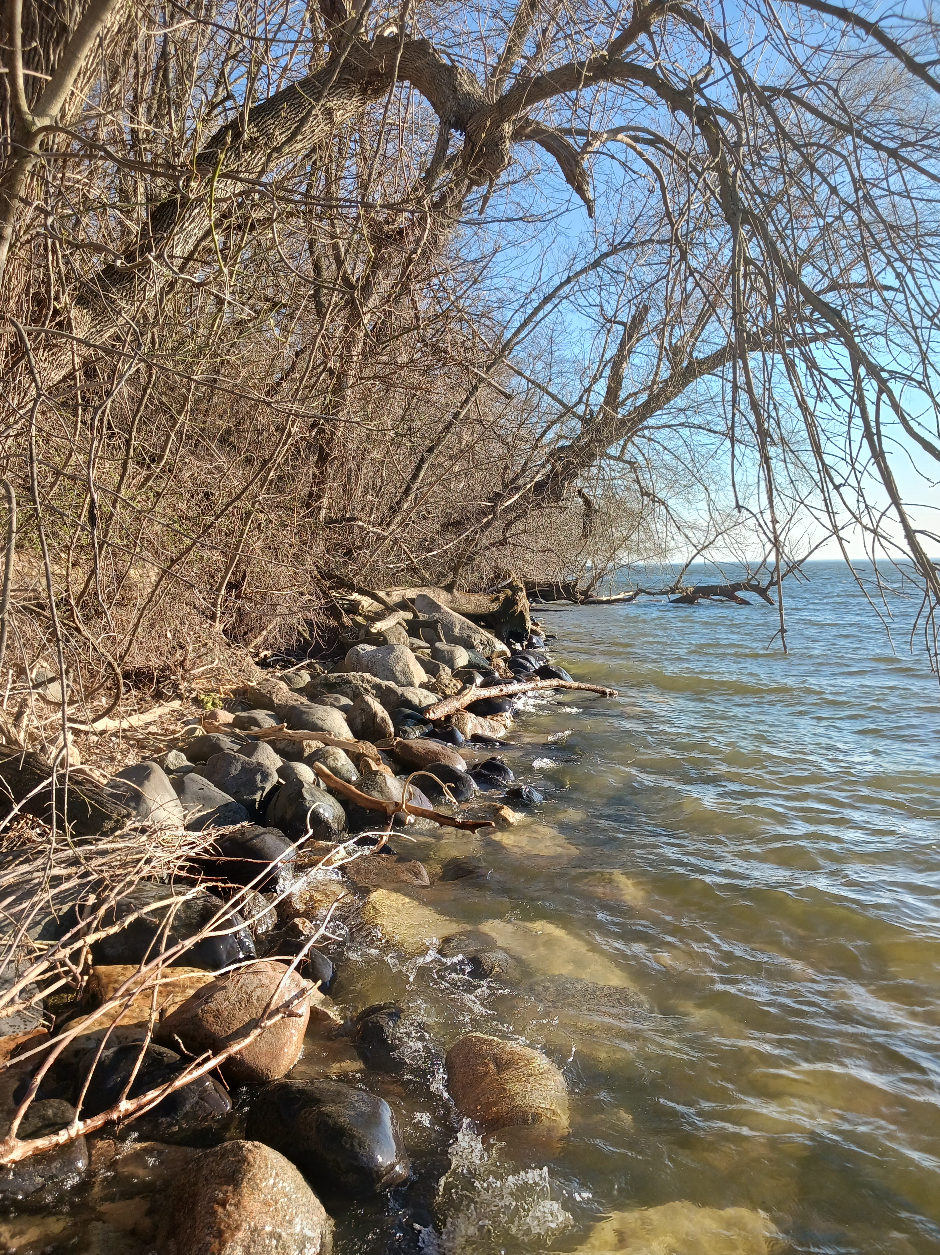 This was the largest water body I’ve kayaked in. There were no other boats we could see. Paddling against the wind was very taxing. We had to be a bit careful with the waves.