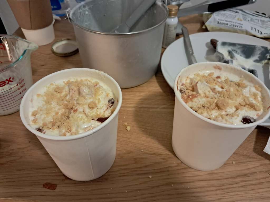 Figure 2: Layering the ice cream, jam, and cookie crumbs.